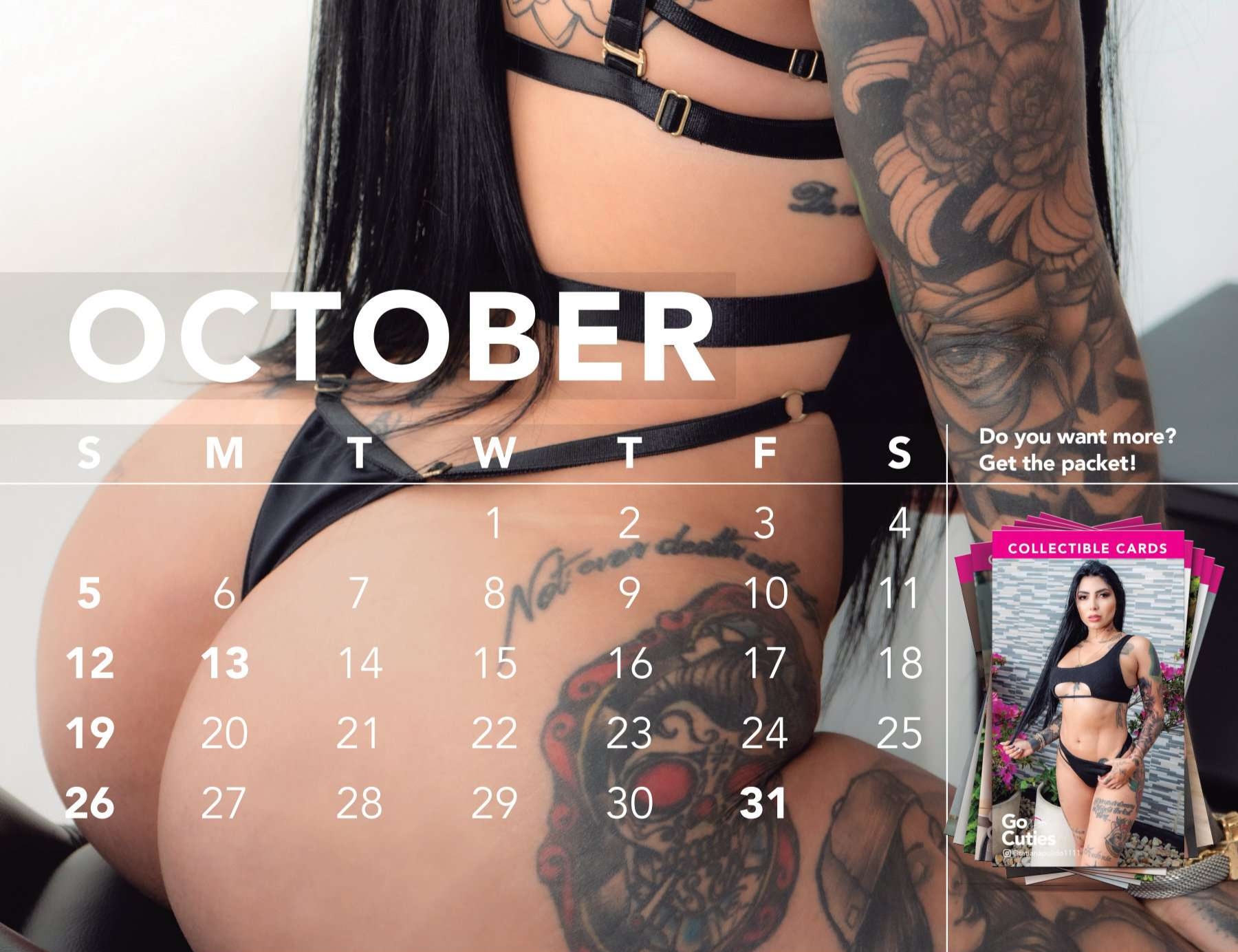 October unveils Fernanda’s mysterious allure in this Go Cuties Collectible Calendar edition. With the crisp air of fall and a hint of Halloween magic, she blends elegance with a daring edge — confident, bold, and irresistibly enchanting. Surrounded by deep autumn hues and golden twilight, Fernanda captures the month’s moody beauty with captivating intensity. Her presence makes October 2025 a perfect mix of charm, mystery, and magnetic sophistication.
